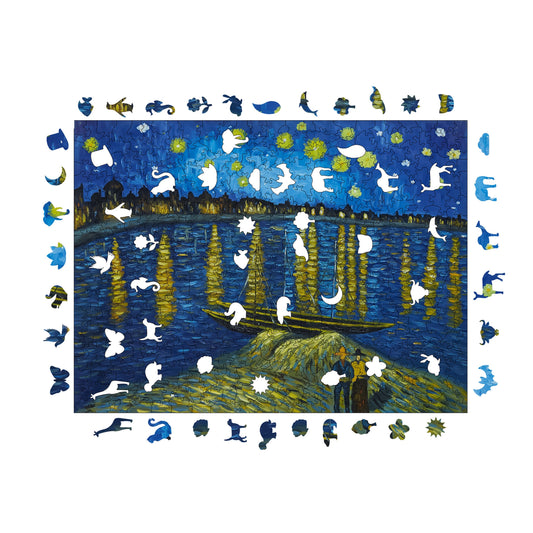Wooden Puzzles for Adults, Van Gogh A Starry Night on the Rhine Premium Jigsaw Puzzles, 450 Pieces Challenging Wooden Jigsaw, 11,4"x15,4" (29x39 cm)