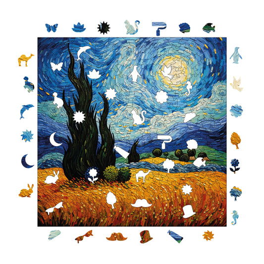 Wooden Puzzles for Adults, Van Gogh Starry Night Reproduction Premium Jigsaw Puzzles, 353 Pieces Challenging Wooden Jigsaw, 11,4"x11,4" (29x29 cm)
