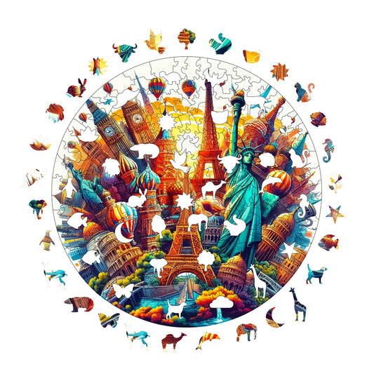 Wooden Puzzles for Adults, World Cities Premium Jigsaw Puzzles, 252 Pieces Challenging Wooden Jigsaw, 11,4"x11,4" (29x29 cm)