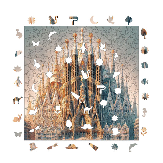 Wooden Puzzles for Adults, La Sagrada Familia Premium Jigsaw Puzzles, 353 Pieces Challenging Wooden Jigsaw, 11,4"x11,4" (29x29 cm)