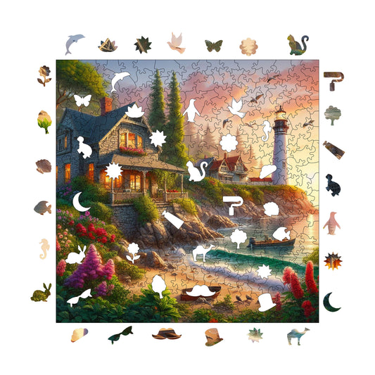 Wooden Puzzles for Adults, Cottage by the Sea Premium Jigsaw Puzzles, 353 Pieces Challenging Wooden Jigsaw, 11,4"x11,4" (29x29 cm)