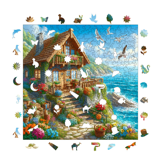 Wooden Puzzles for Adults, Cottage by the Sea Premium Jigsaw Puzzles, 353 Pieces Challenging Wooden Jigsaw, 11,4"x11,4" (29x29 cm)