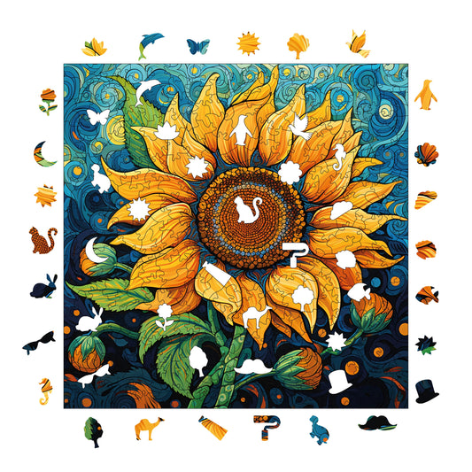 Wooden Puzzles for Adults, Sunflower Flower Premium Jigsaw Puzzles, 353 Pieces Challenging Wooden Jigsaw, 11,4"x11,4" (29x29 cm)