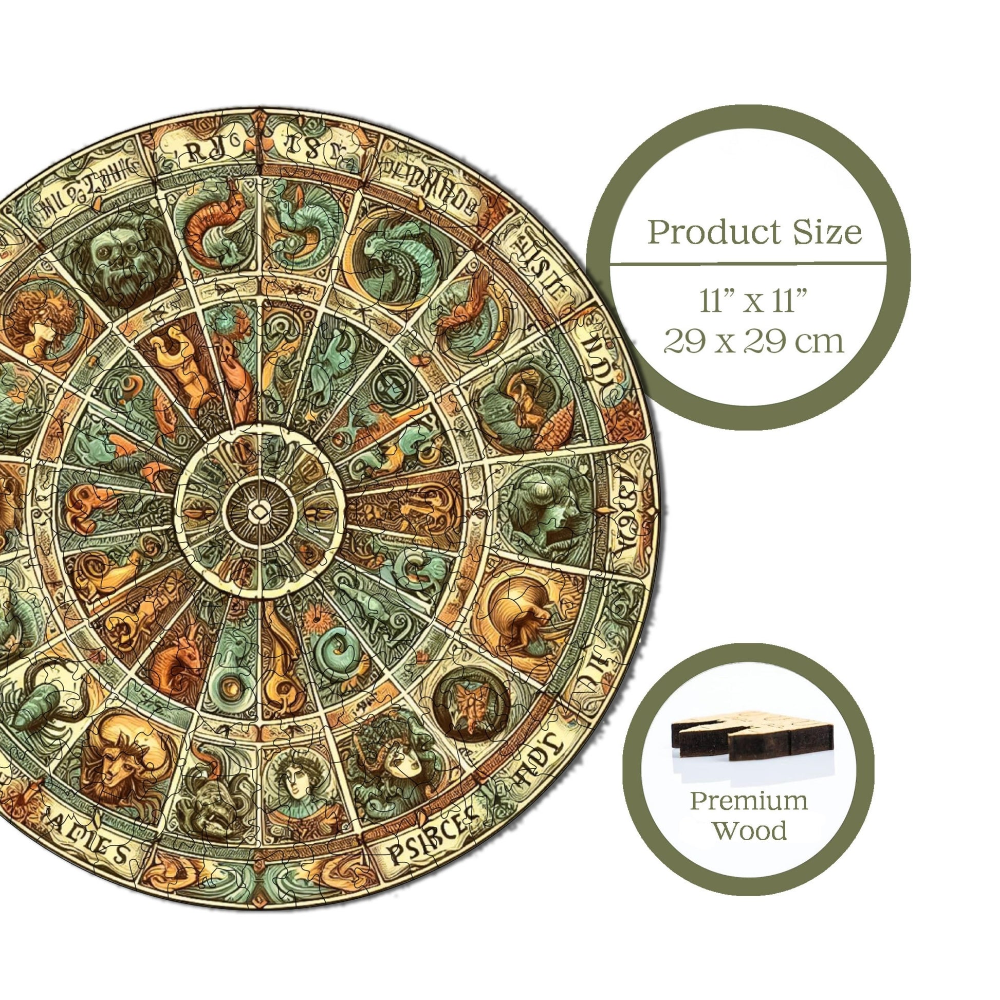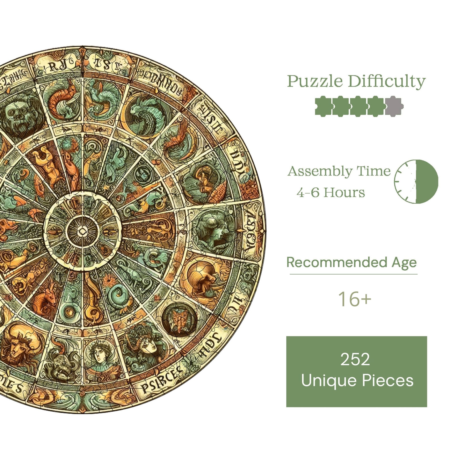 Holzpuzzle für Erwachsene - Antikes Tierkreisrad |A1-10| 252 Teile Holzpuzzle