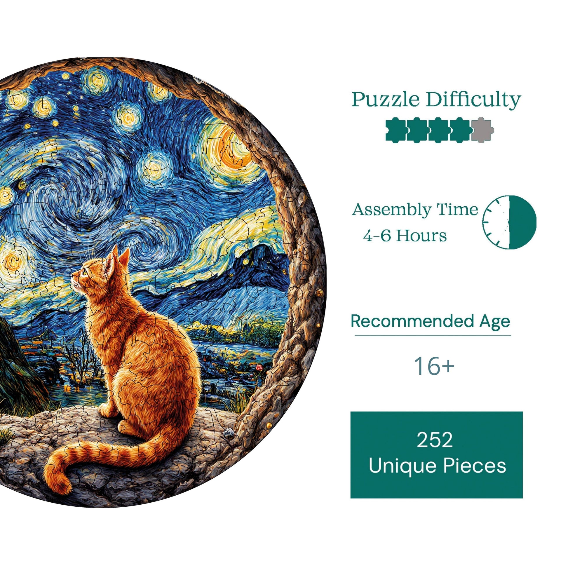 Holzpuzzle für Erwachsene – Katze unter der Sternennacht | A1-14 | 252 Teile Holzpuzzle