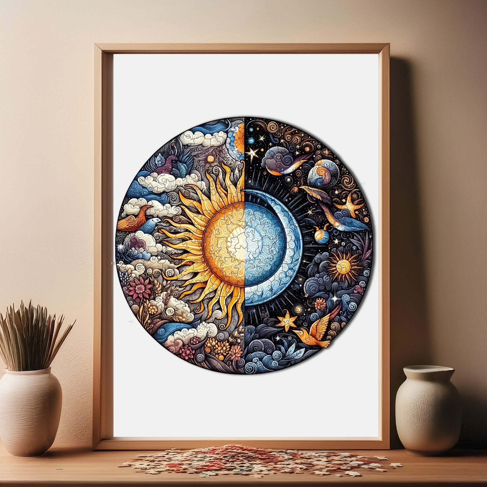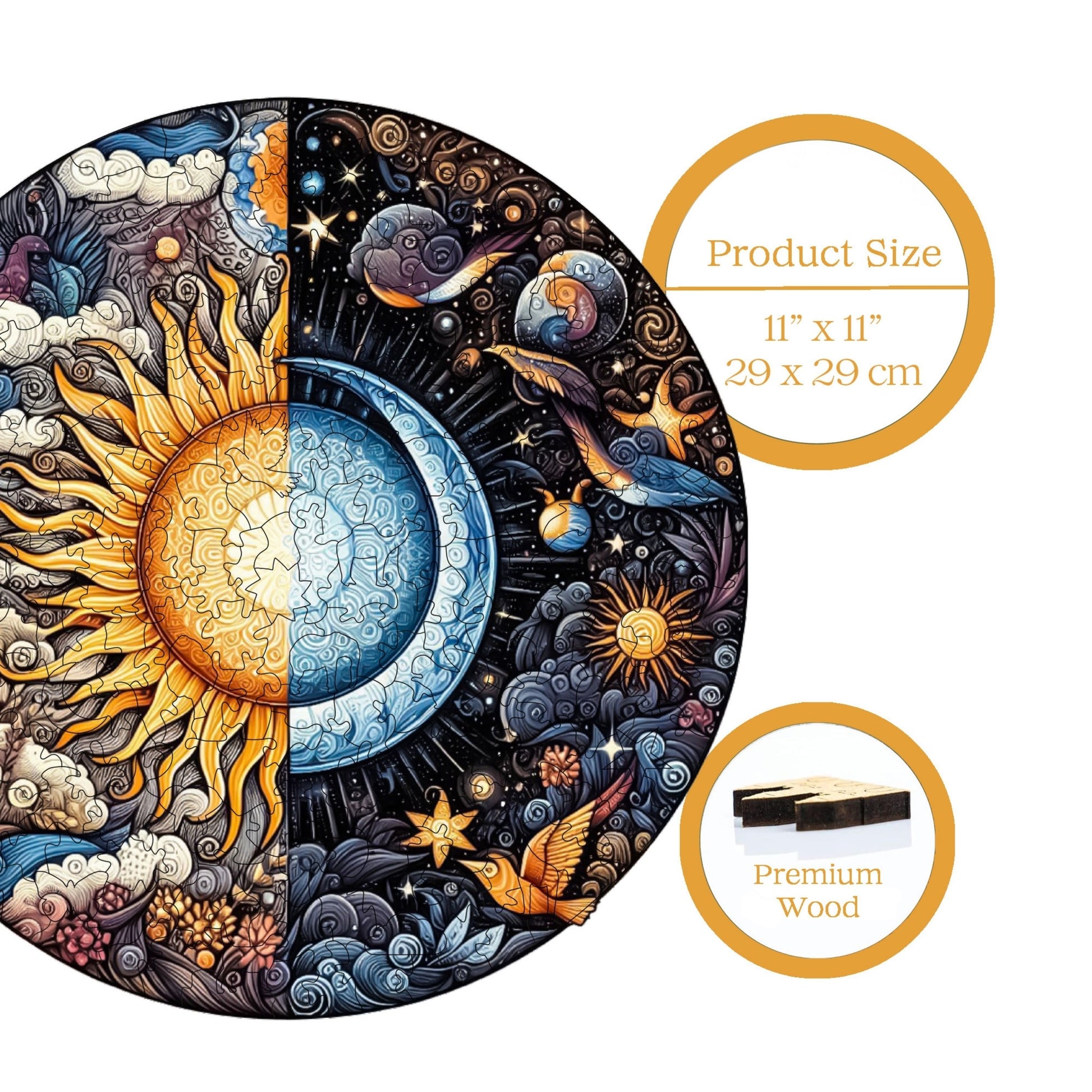 Holzpuzzle für Erwachsene, Premium-Puzzle „Tag und Nacht“, 252 Teile, anspruchsvolles Holzpuzzle, 11,4"x11,4" (29 x 29 cm), einzigartige Form, Holzpuzzle für Erwachsene