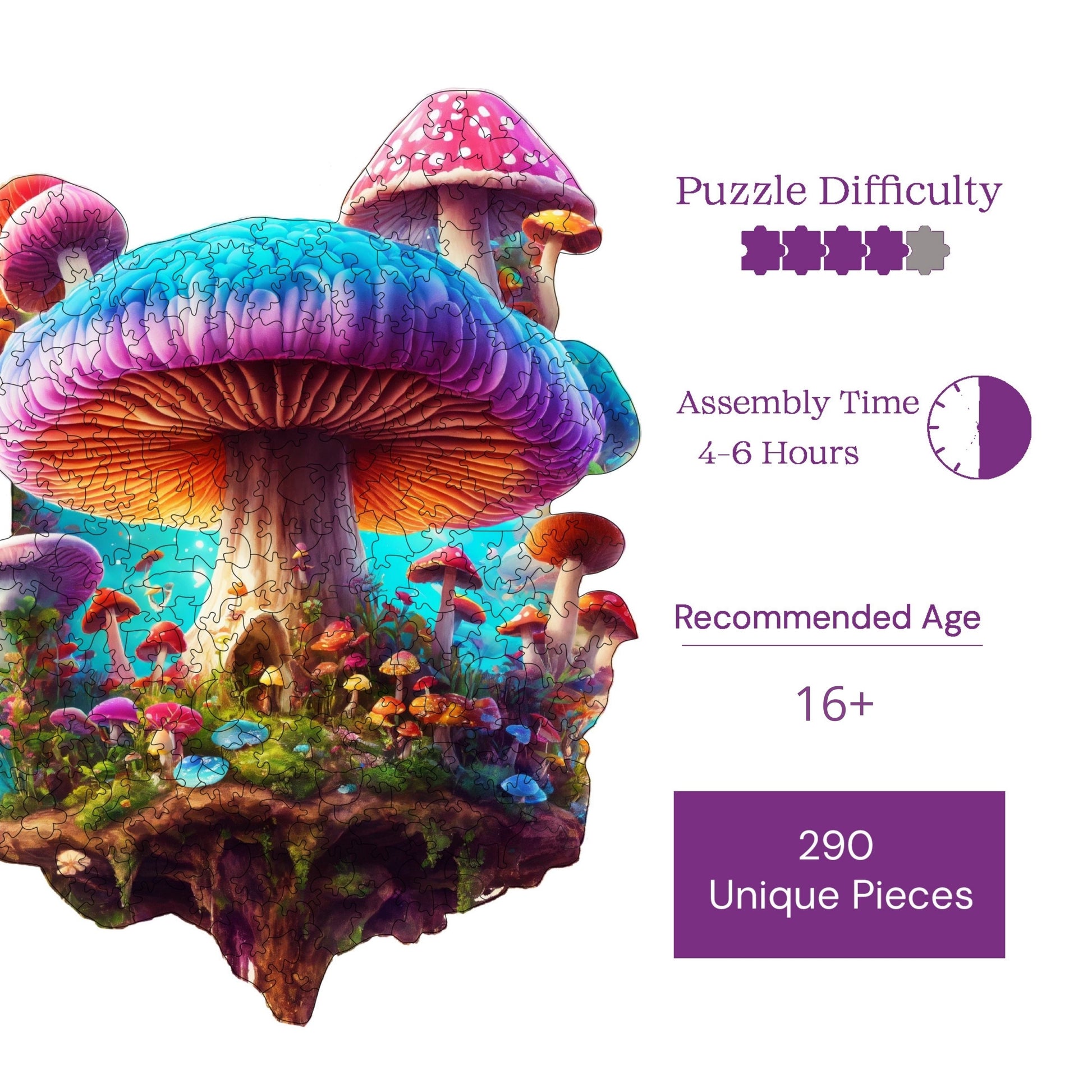 Holzpuzzle für Erwachsene, Mushroom Island Premium Puzzle, 290 Teile anspruchsvolles Holzpuzzle, 11,4"x15" (29x38 cm) einzigartige Form, Holzpuzzle für Erwachsene