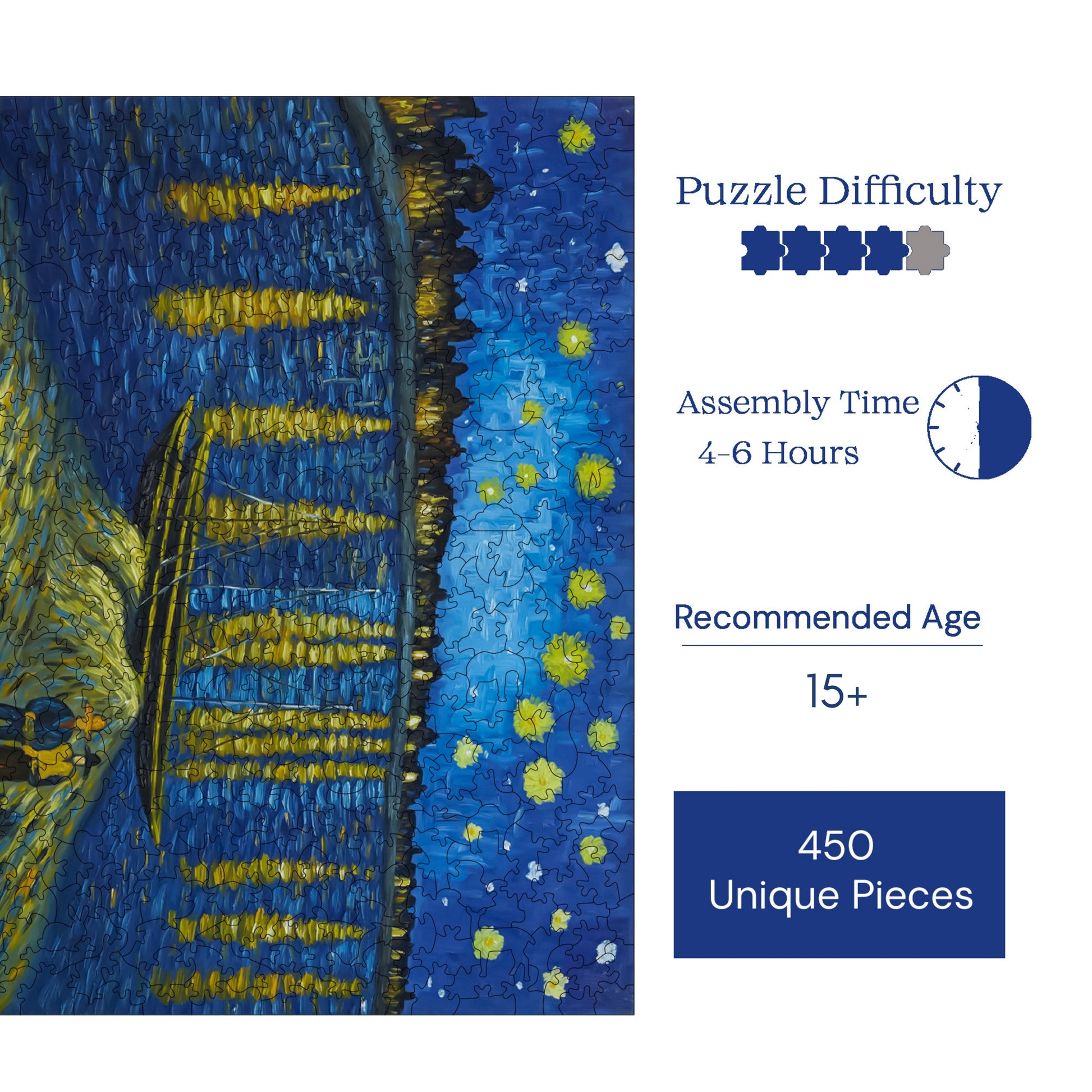 Holzpuzzle für Erwachsene - Van Gogh Eine Sternennacht am Rhein |R1-11| 450 Teile Holzpuzzle