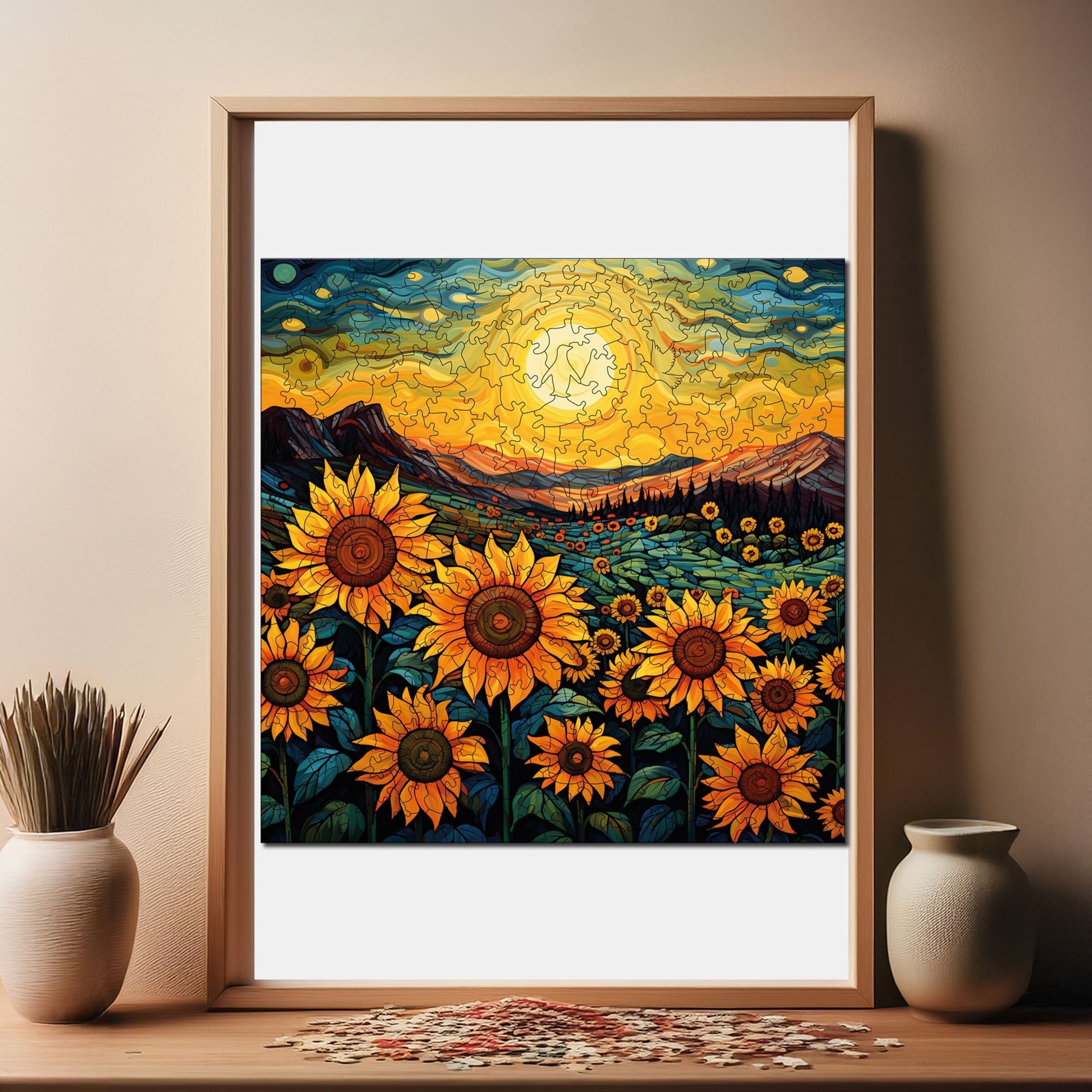 Evening in The Sunflower Field – Wooden Jigsaw Puzzle