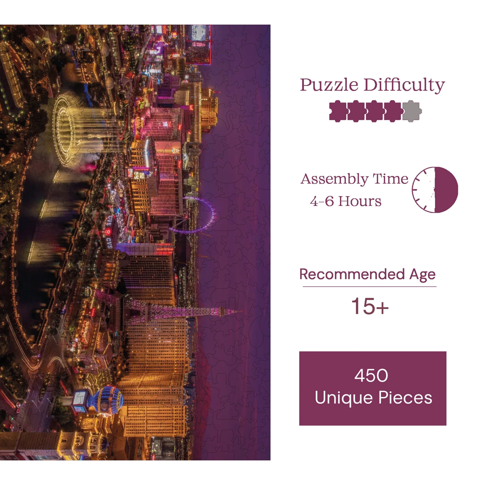 Wooden Puzzles for Adults, Vegas Nights Premium Jigsaw Puzzles, 450 Pieces Challenging Wooden Jigsaw, 11,4"x15,4" (29x39 cm)