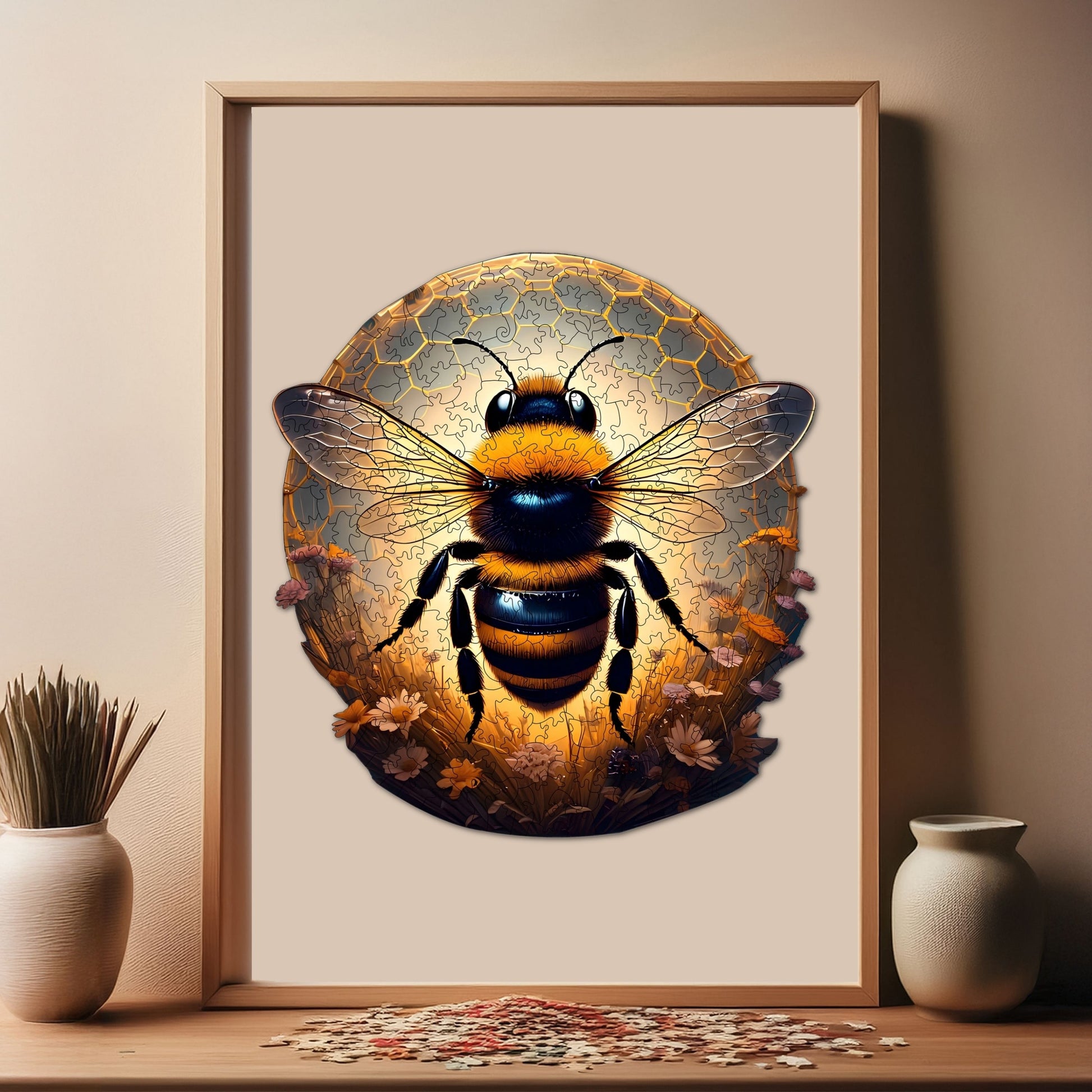 - Özel Tasarım ve Tema: Bu ahşap yapboz, arı temasına sahip olup, detaylı çizimi ve kendine özgü tasarımıyla klasik karton yapbozlardan açıkça ayrılıyor.