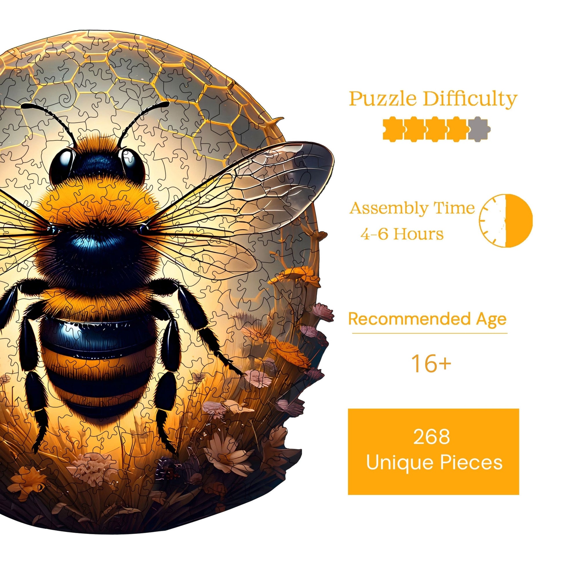 Yetişkinler için Ahşap Yapboz – Arı | WZ-22 | 268 Parça | 28 × 30 cm (11,0” × 11,8” inç)
