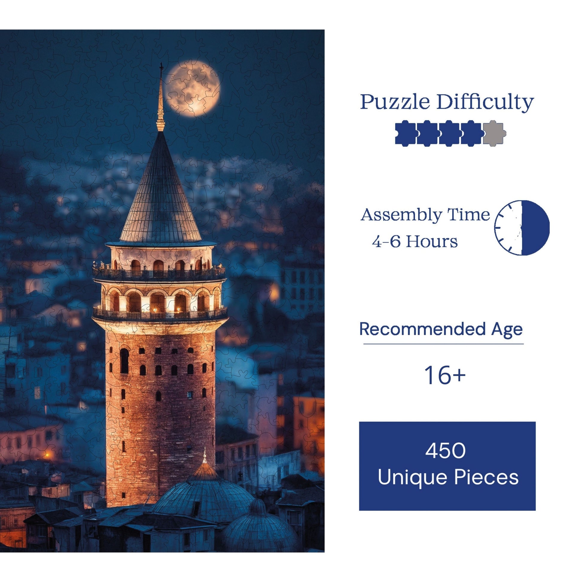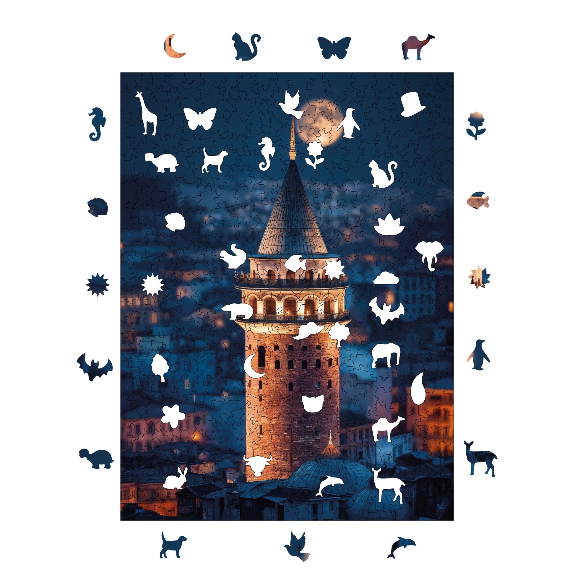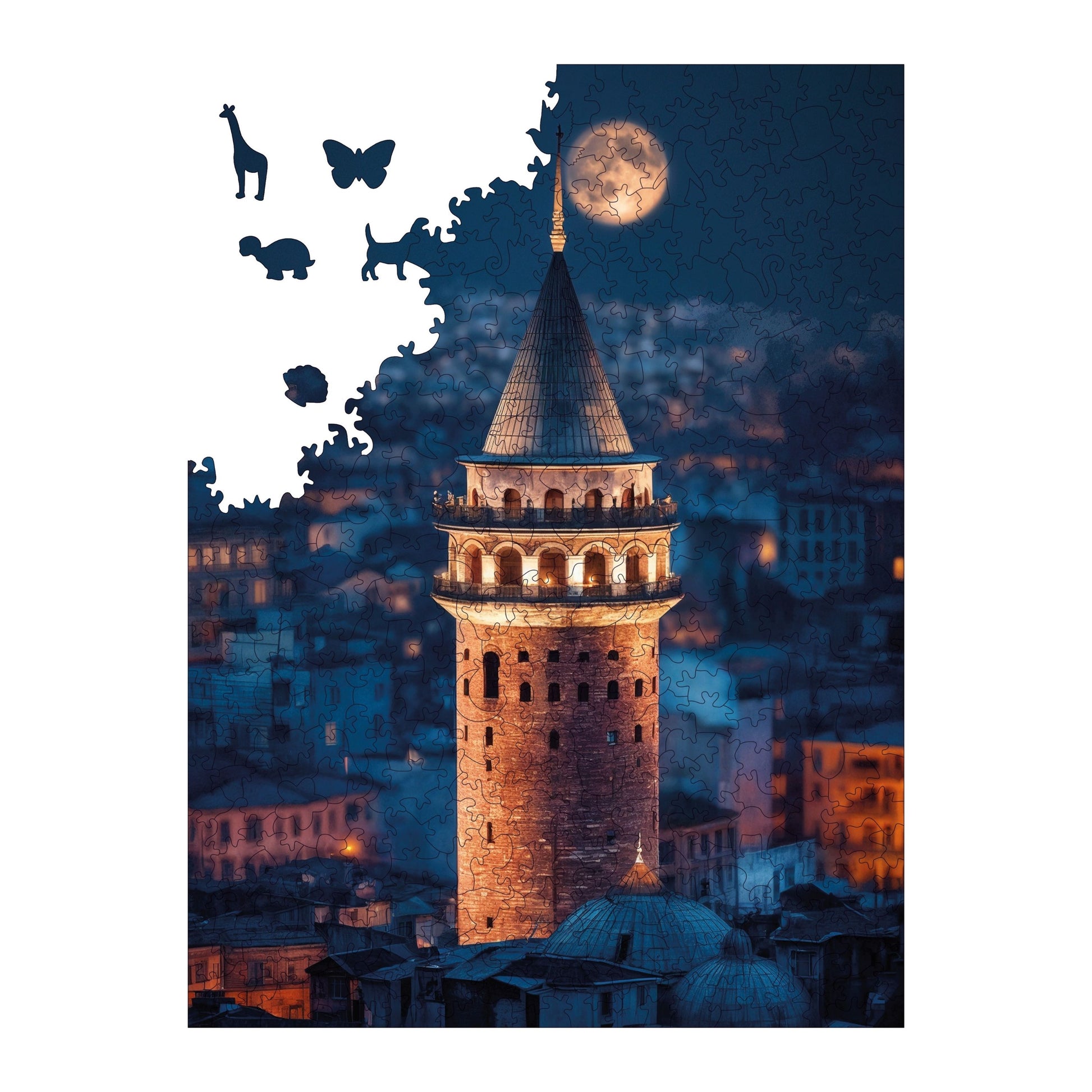 - Özel Tasarım ve Tema: Bu ahşap yapboz, efsanevi Galata temasına sahip olup, detaylı çizimleri ve kendine özgü tasarımıyla klasik karton yapbozlardan açıkça ayrılıyor.