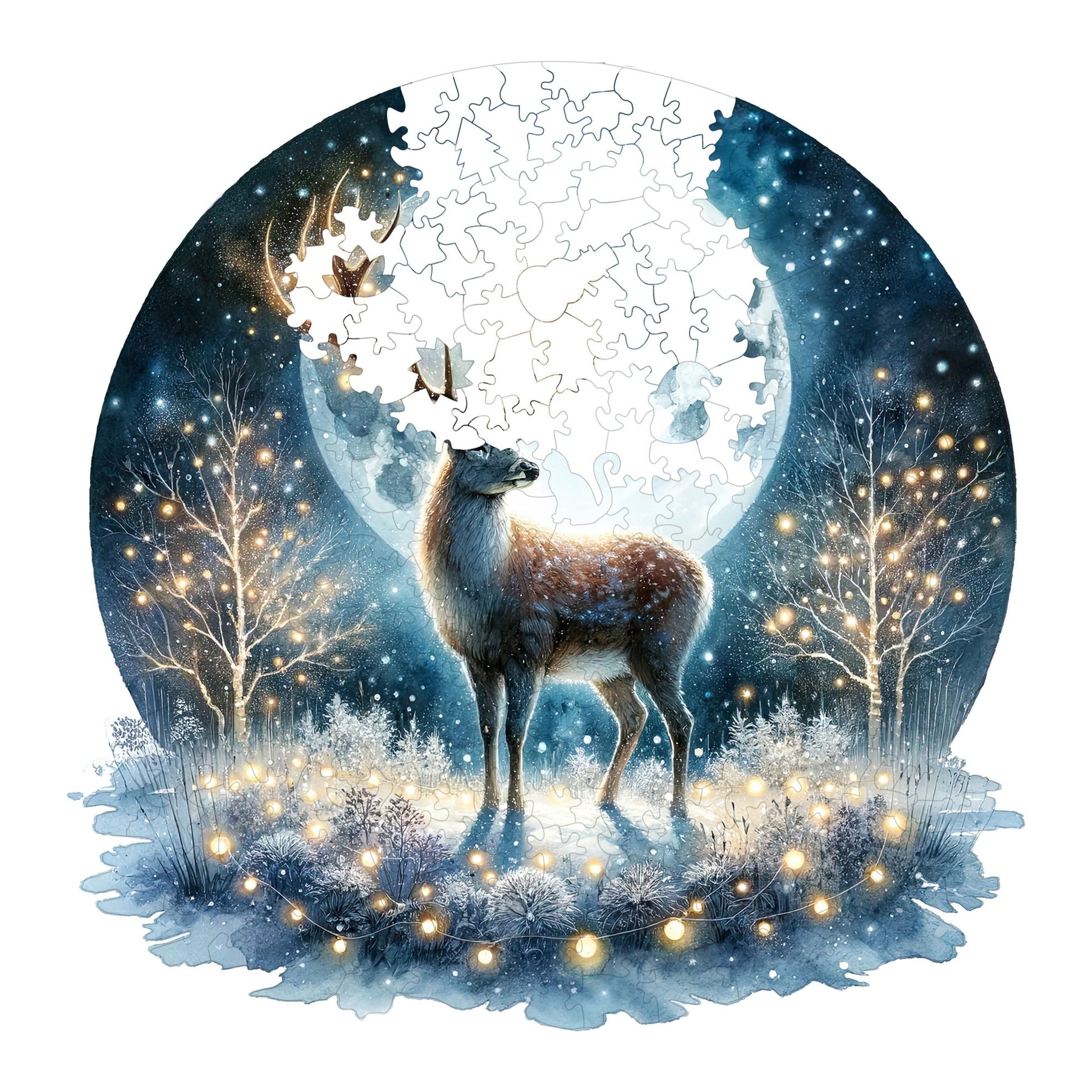 - Özel Tasarım ve Tema: Bu ahşap yapboz, geyik temasına sahip olup, detaylı çizimi ve kendine özgü tasarımıyla klasik karton yapbozlardan açıkça ayrılıyor.