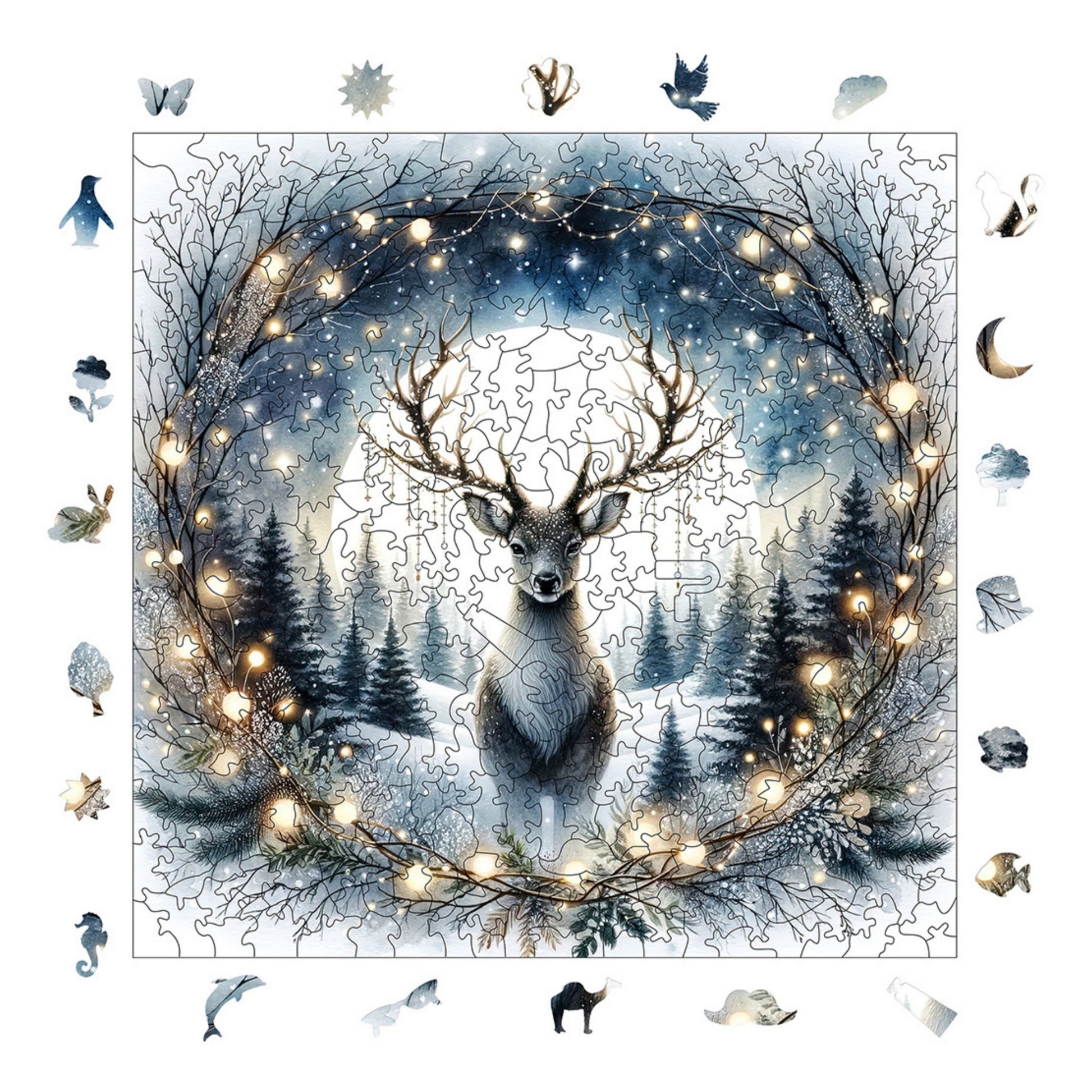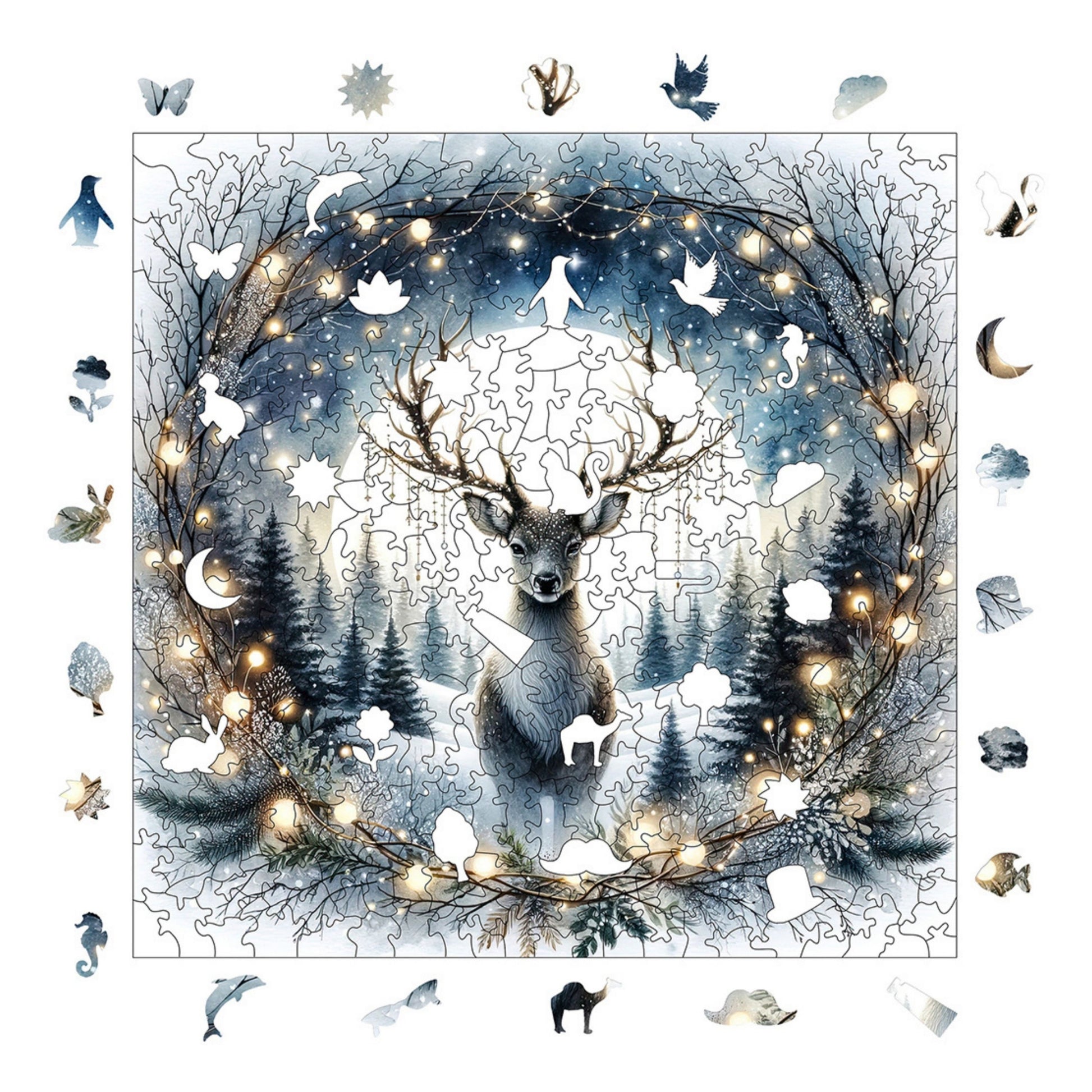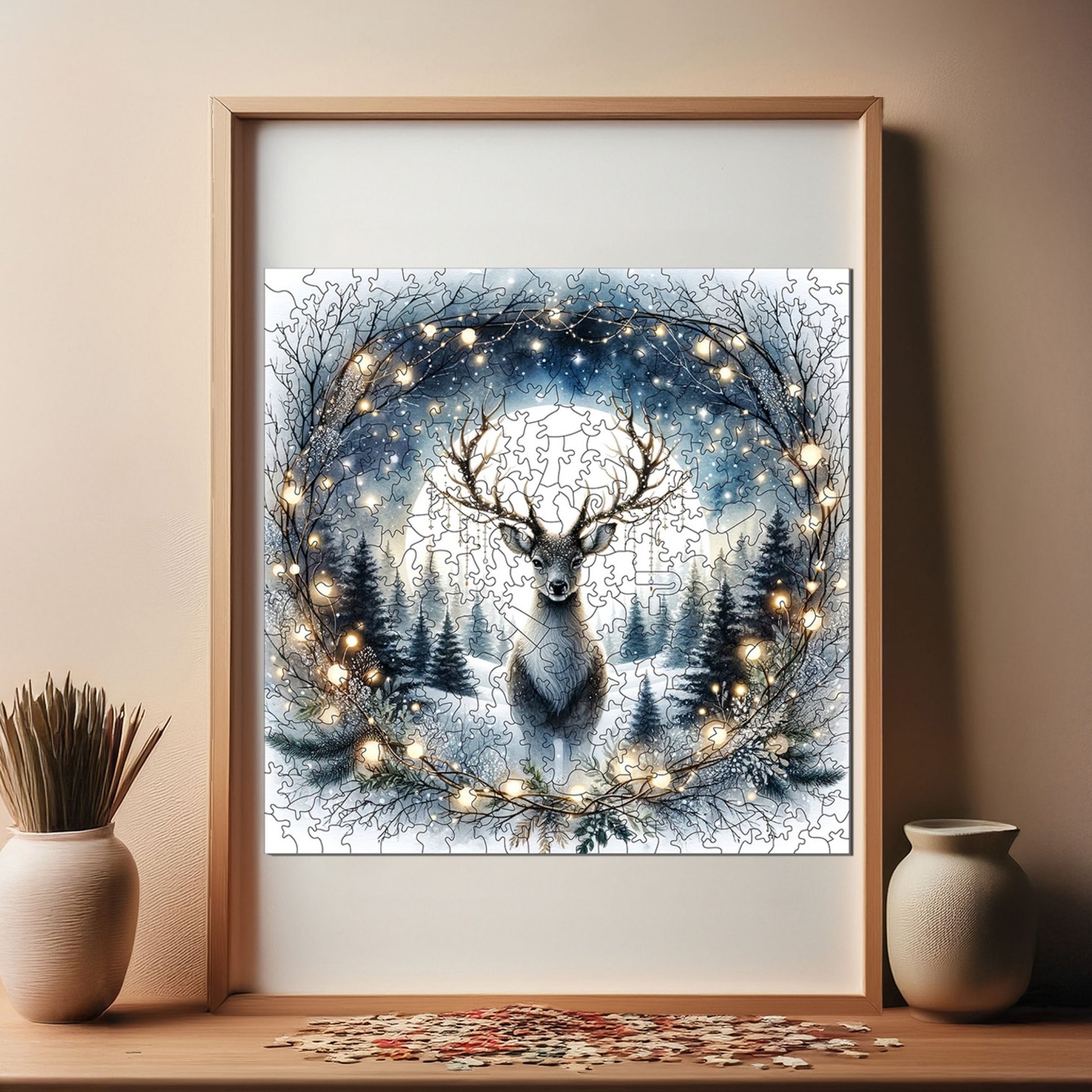 Gümüş Ayın Altındaki Geyik - Ahşap Puzzle