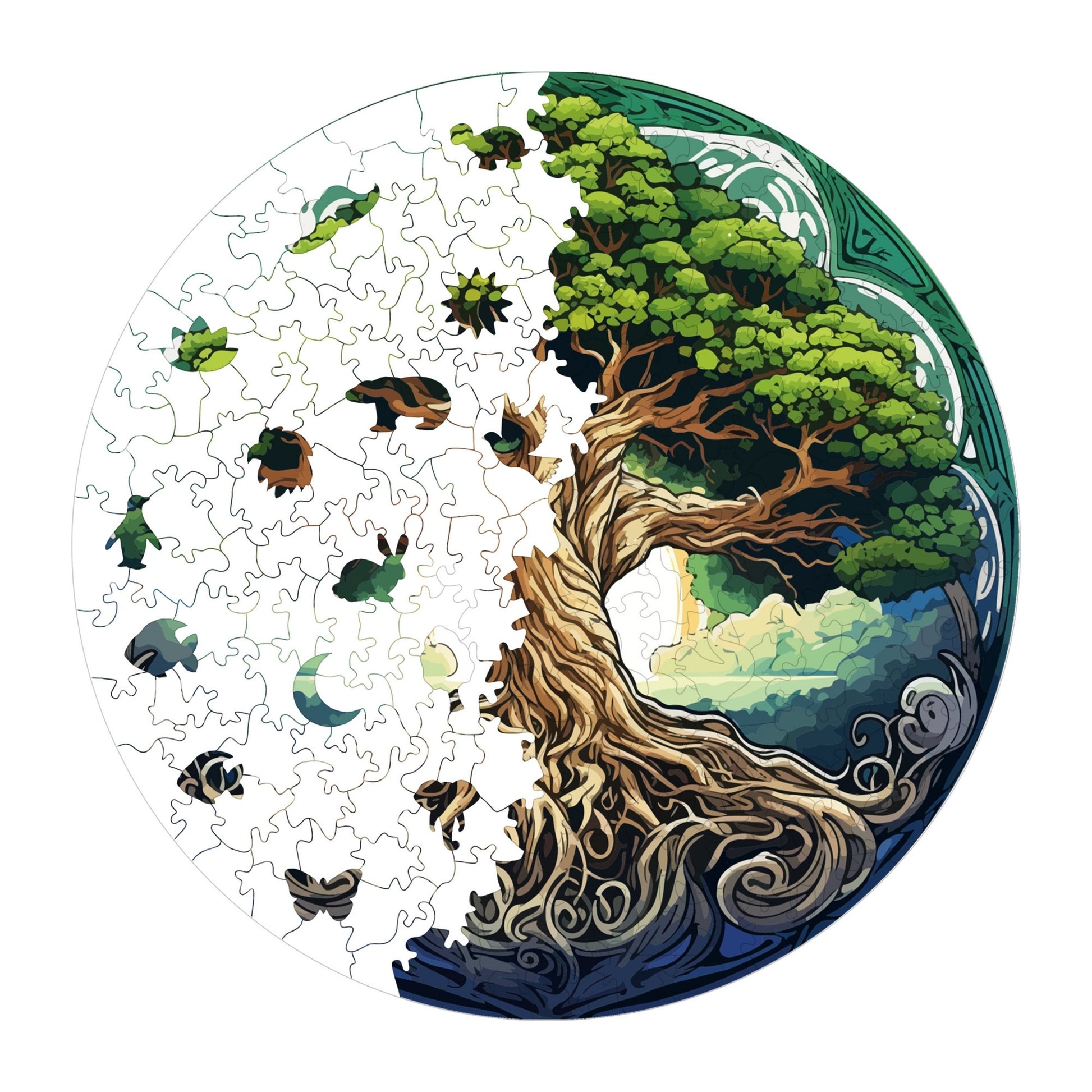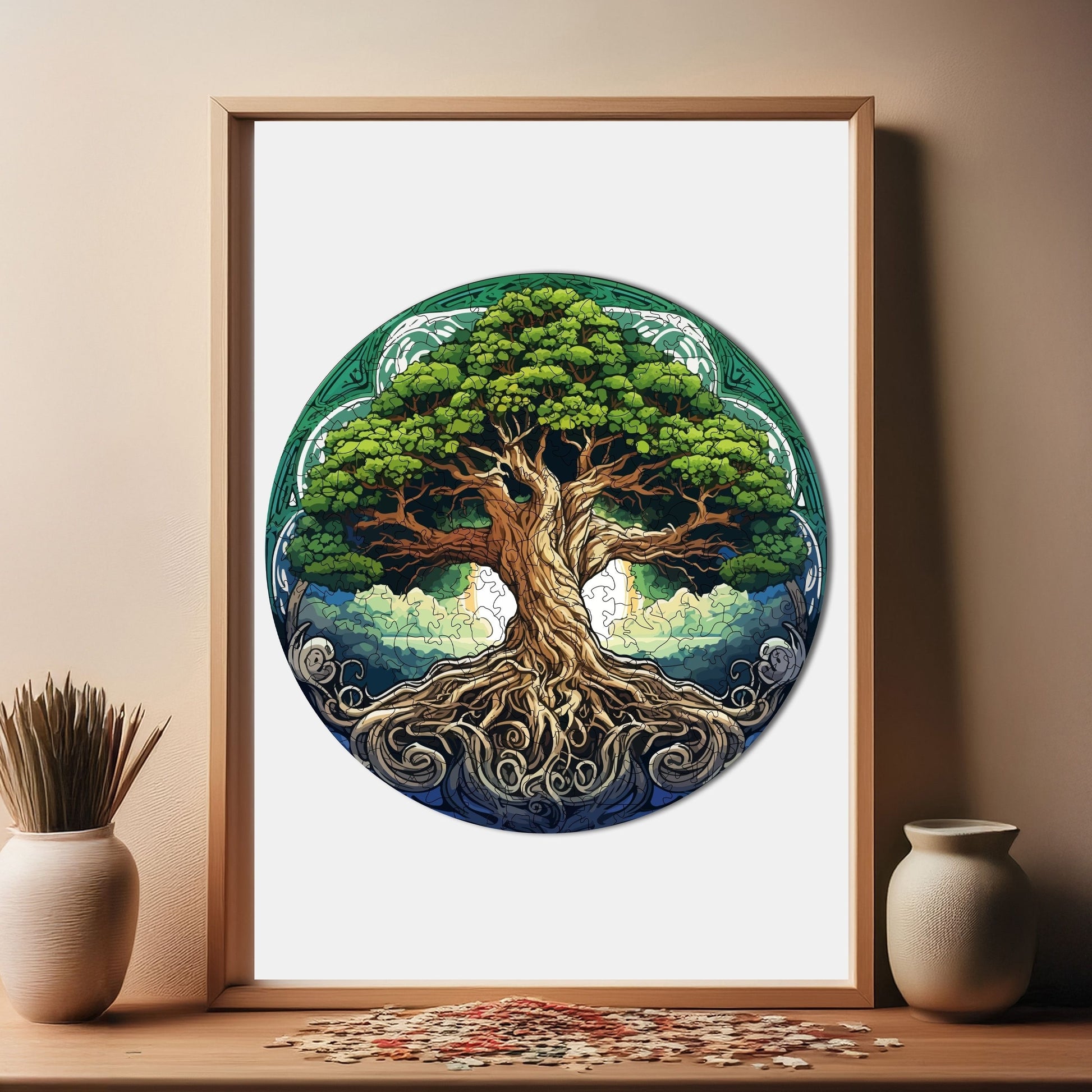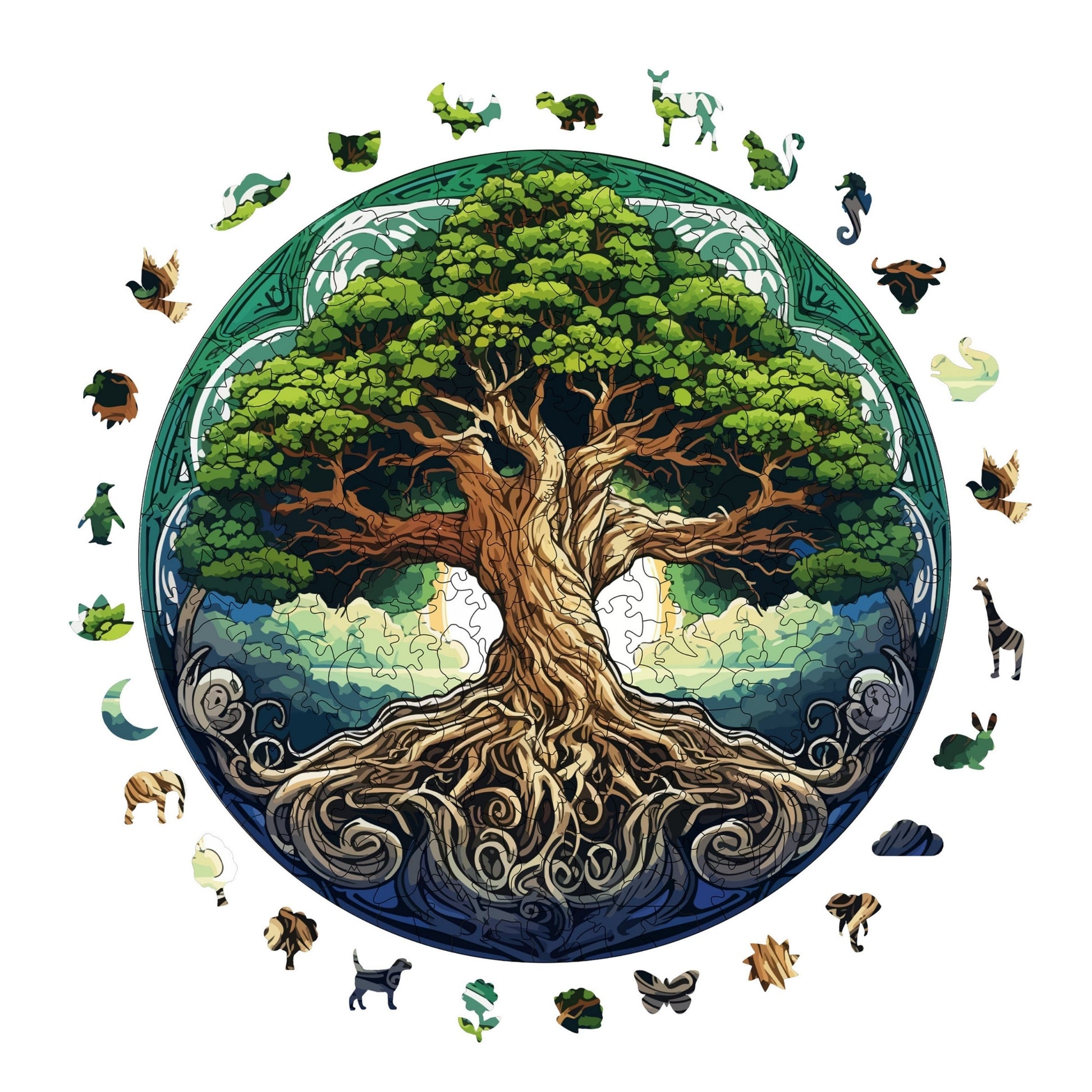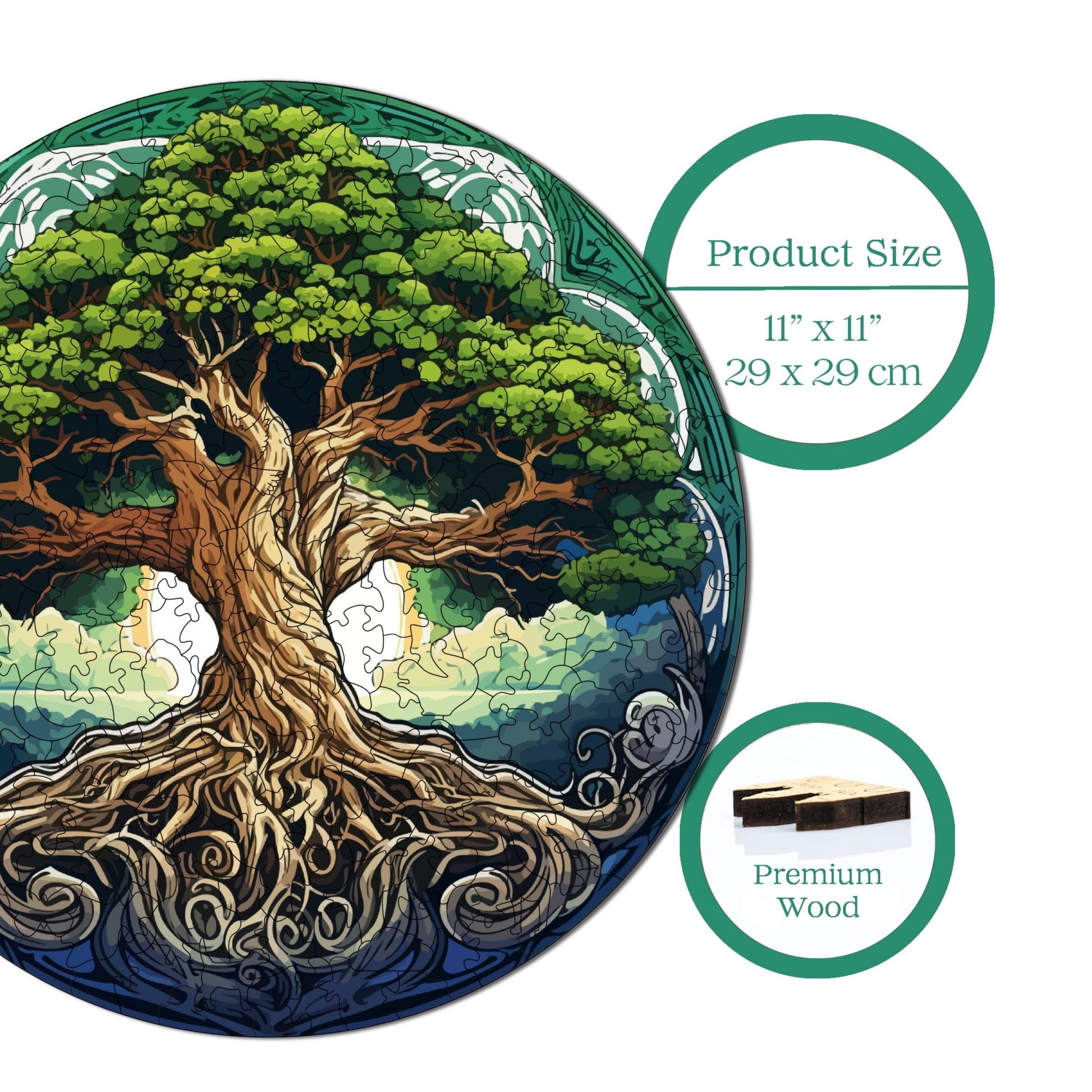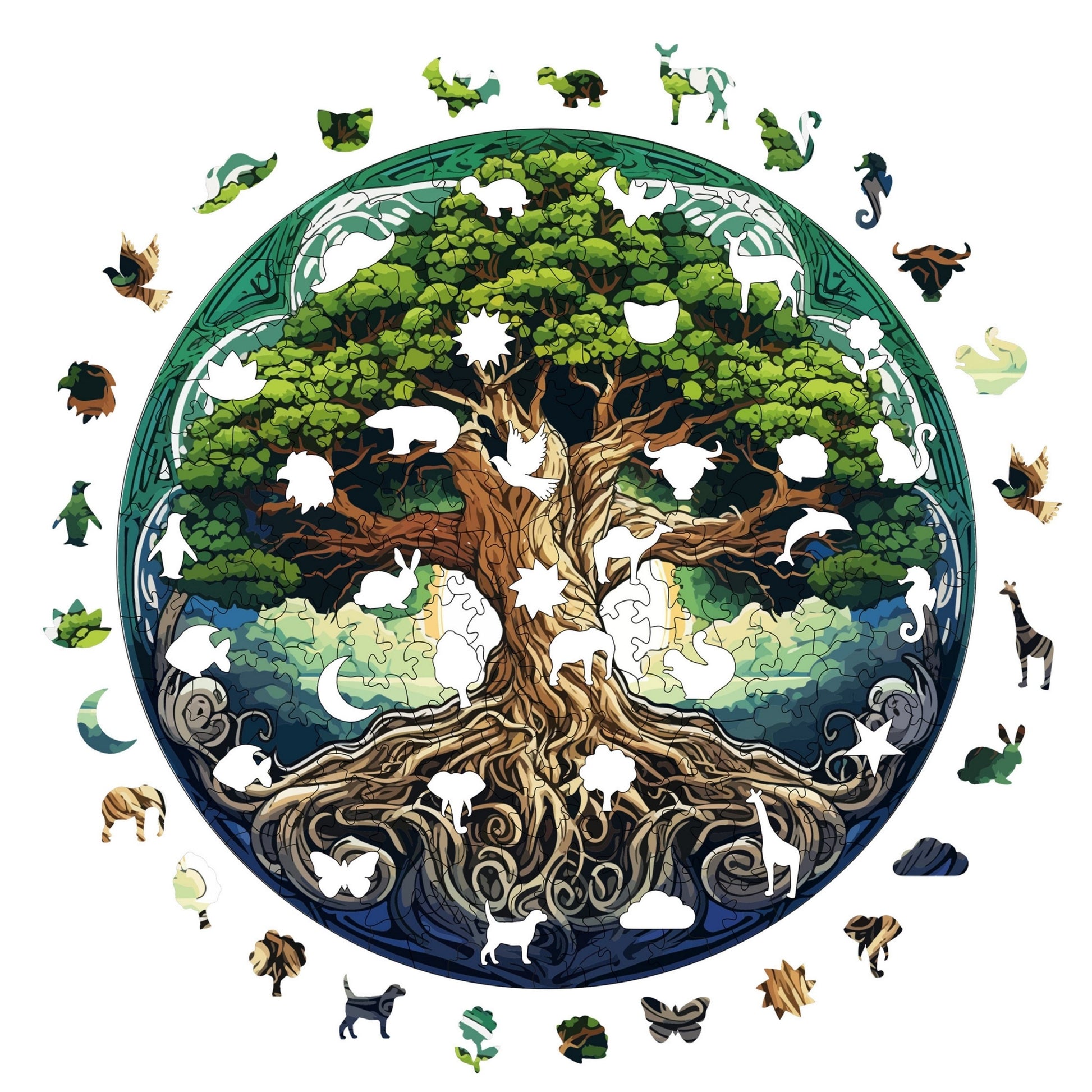 - Özel Tasarım ve Tema: Bu ahşap yapboz, Hayat Ağacı temasına sahiptir ve detaylı çizimi ve kendine özgü tasarımıyla klasik karton yapbozlardan açıkça ayrılır.