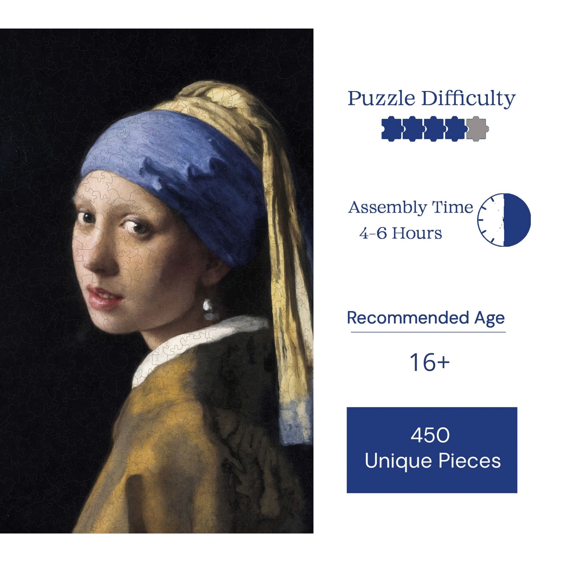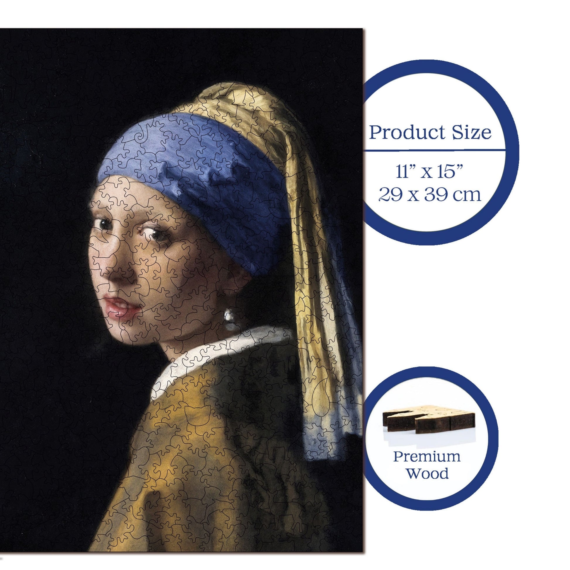 Yetişkinler İçin Ahşap Yapboz – İnci Küpeli Kız | R1-38 | 450 Parça | 29 × 39 cm (11,4” × 15,4” inç)