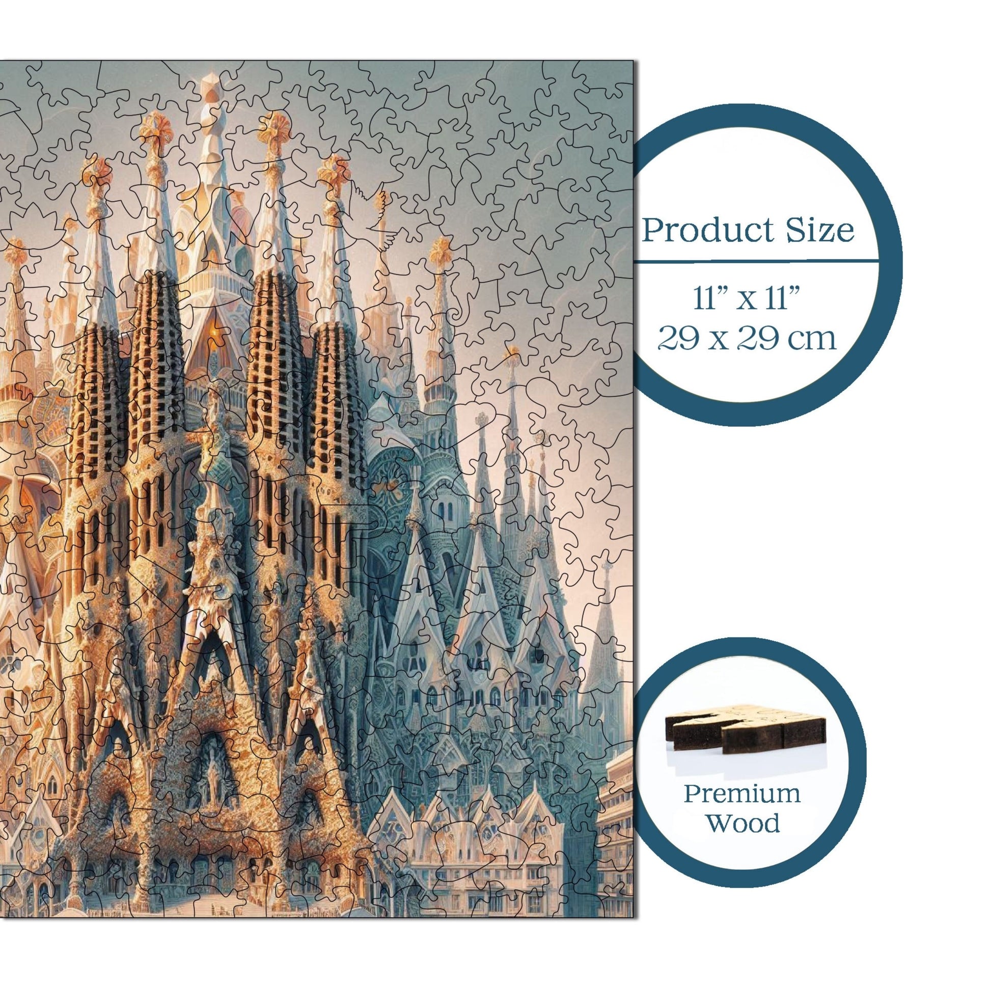 Yetişkinler için Ahşap Yapboz – La Sagrada Familia | S1-20 | 353 Parça | 29 × 29 cm (11,4” × 11,4” inç)