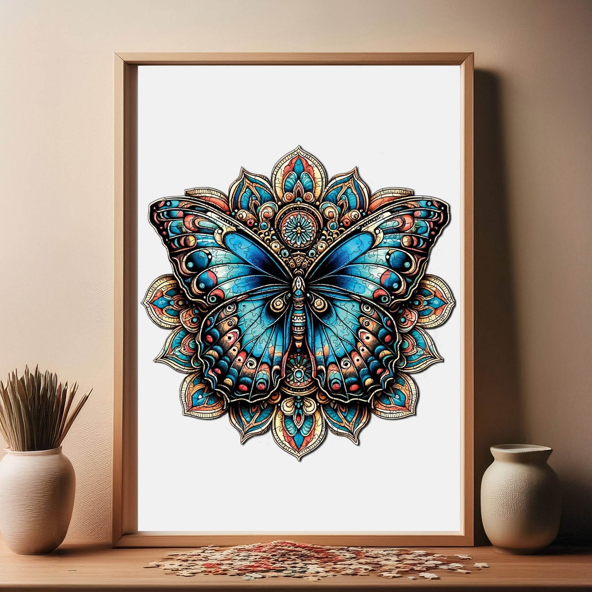 - Özel Tasarım ve Tema: Bu ahşap yapboz, Mandala Kelebek temasına sahiptir ve detaylı çizimi ve kendine özgü tasarımıyla klasik karton yapbozlardan açıkça ayrılır.