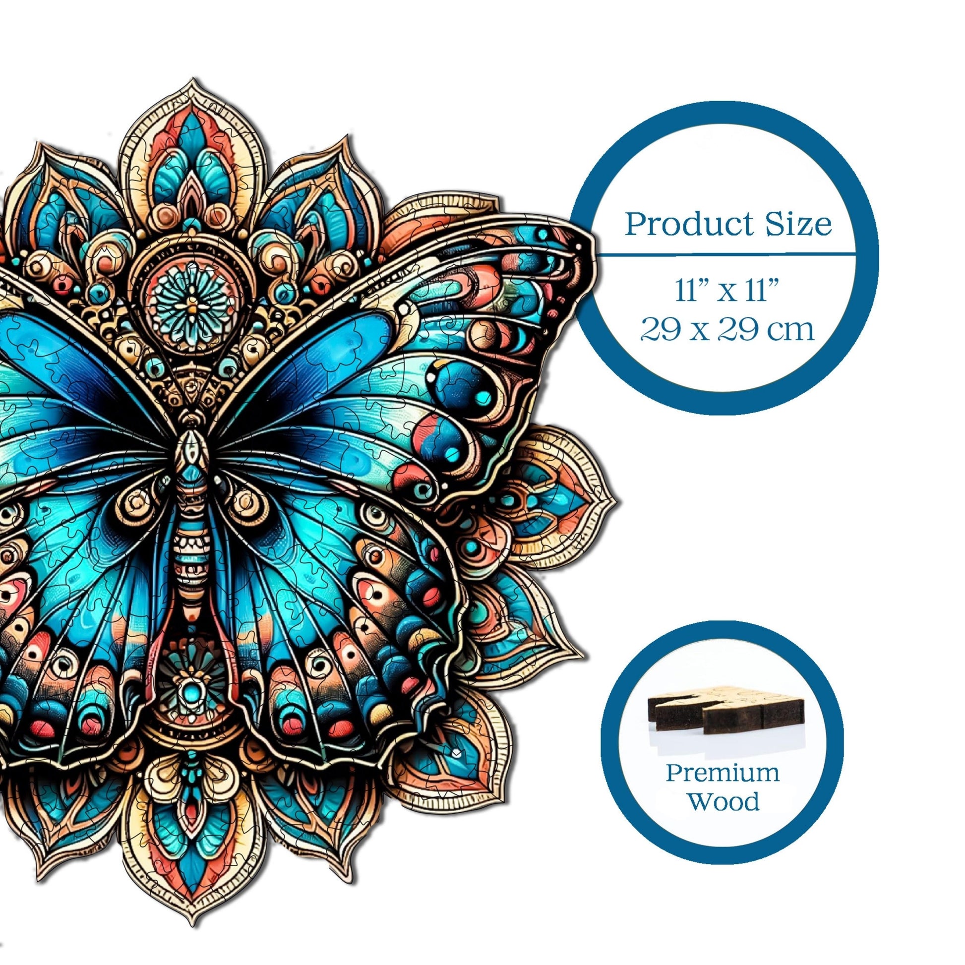 Yetişkinler için Ahşap Yapboz – Mandala Kelebek | WZ-06 | 250 Parça | 29 × 29 cm (11,4” × 11,4” inç)