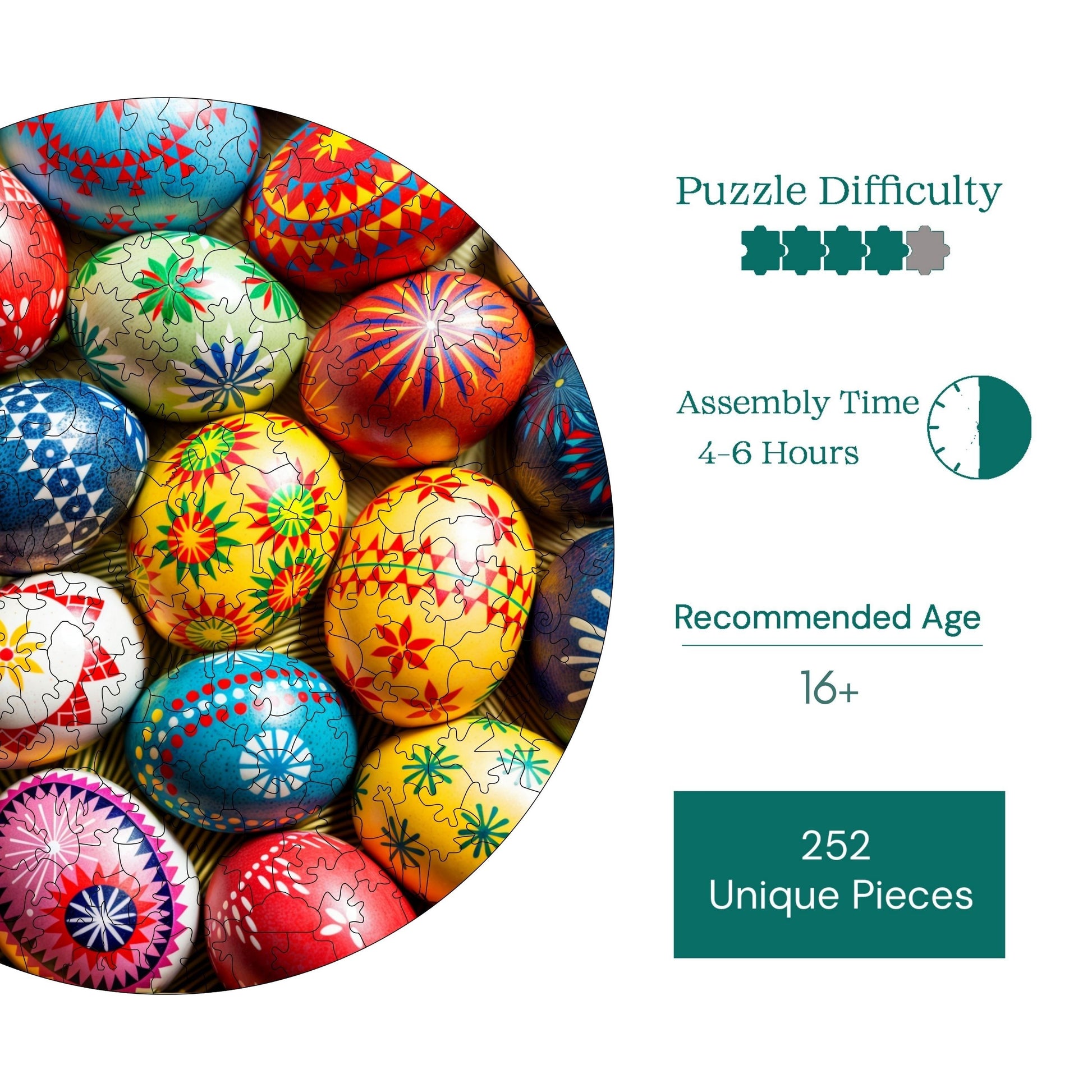Yetişkinler İçin Ahşap Yapboz – Paskalya Yumurtaları | A1-12 | 252 Parça | 29 × 29 cm (11,4” × 11,4” inç)