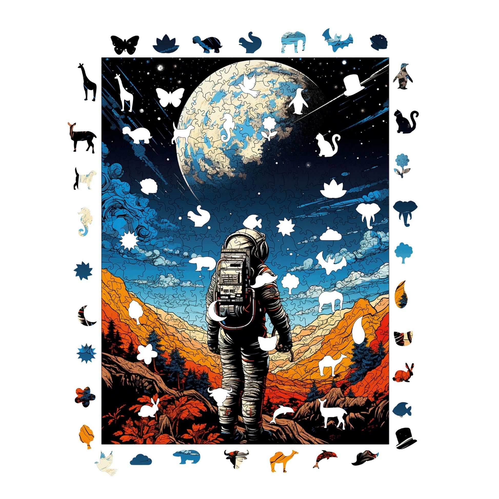 - Özel Tasarım ve Tema: Bu ahşap yapboz, Uzay Yolcusu temasına sahip olup, detaylı çizimleri ve kendine özgü tasarımıyla klasik karton yapbozlardan açıkça ayrılıyor.