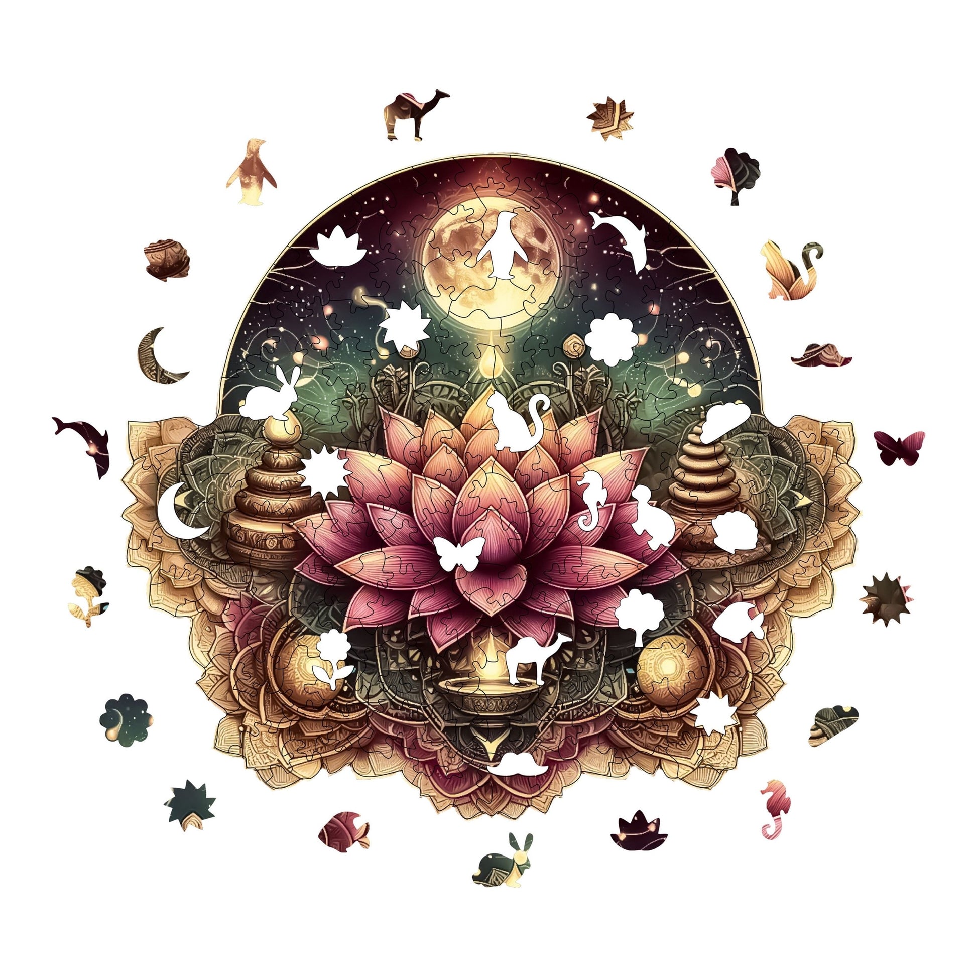 Yıldızlı Lotus Mandala - Ahşap Puzzle