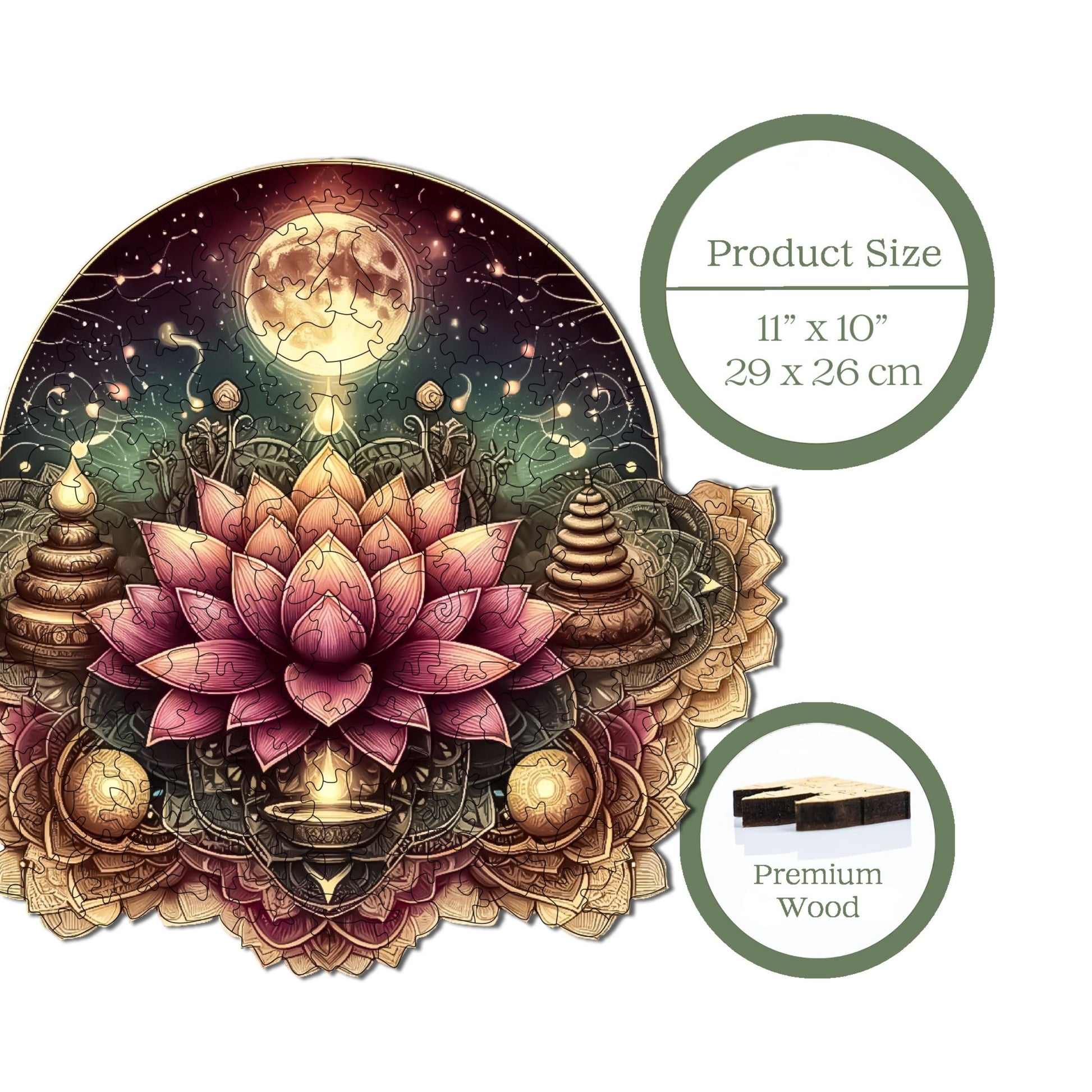Yetişkinler İçin Ahşap Yapboz - Yıldızlı Lotus Mandala |WZ-10| 181 Parça Ahşap Yapboz
