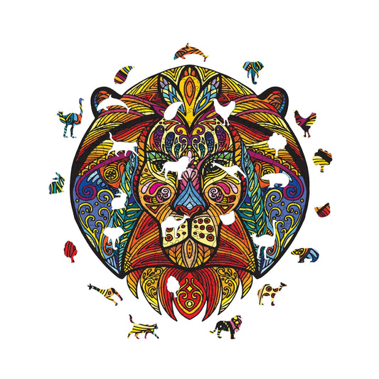 Yetişkinler İçin Ahşap Puzzle, Aslan Figürü Premium Puzzle, 183 Parça Zorlu Ahşap Yapboz, 10,6"x11,4" (27x29 cm) Benzersiz Şekil, Yetişkinler İçin Ahşap Yapbozlar