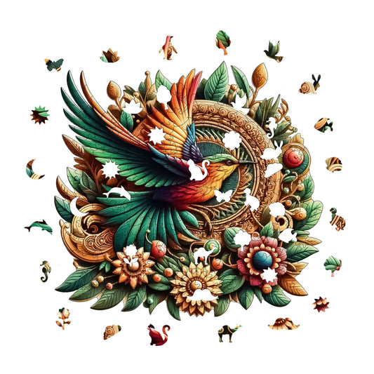 Yetişkinler İçin Ahşap Puzzle, Sinek Kuşu Premium Puzzle, 250 Parça Zorlu Ahşap Yapboz, 11,4"x11" (29x28 cm) Benzersiz Şekil, Yetişkinler İçin Ahşap Yapbozlar