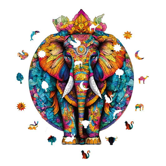Yetişkinler İçin Ahşap Puzzle, Renkli Fil Premium Puzzle, 252 Parça Zorlu Ahşap Yapboz, 11,4"x11,4" (29x29 cm) Benzersiz Şekil, Yetişkinler İçin Ahşap Yapboz
