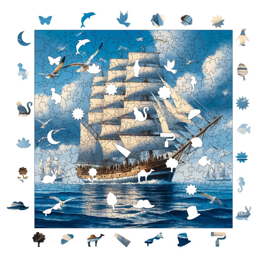 Yetişkinler İçin Ahşap Puzzle, Yelkenli Premium Puzzle, 353 Parça Zorlu Ahşap Yapboz, 11,4"x11,4" (29x29 cm) Benzersiz Şekil, Yetişkinler İçin Ahşap Yapbozlar