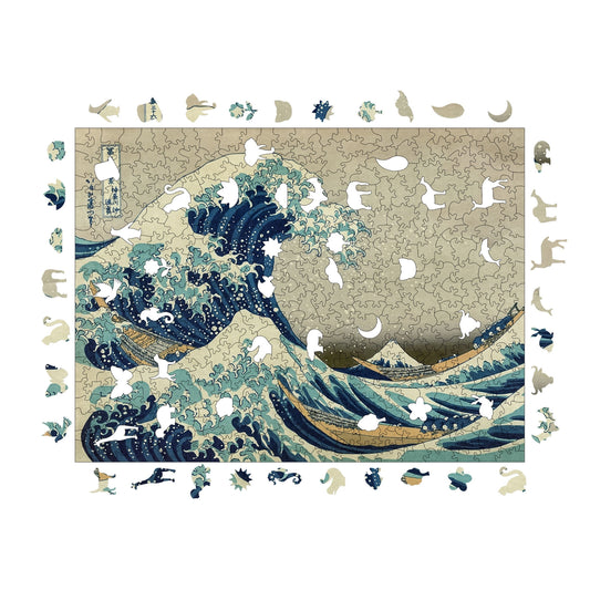• Yetişkinler İçin Ahşap Puzzle, Kanagawa'nın Büyük Dalgası Premium Puzzle, 450 Parça Zorlu Ahşap Yapboz, 11,4"x15,4" (29x39 cm) Benzersiz Şekil, Yetişkinler İçin Ahşap Yapboz