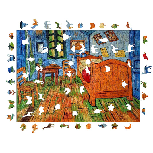 • Yetişkinler İçin Ahşap Puzzle, Van Gogh Yatak Odası Reprodüksiyonu Premium Puzzle, 353 Parça Zorlu Ahşap Yapboz, 11,4"x11,4" (29x29 cm) Benzersiz Şekil, Yetişkinler İçin Ahşap Yapbozlar