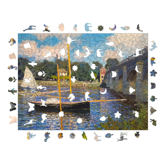 • Yetişkinler İçin Ahşap Puzzle, Claude Monet Argenteuil Köprüsü Premium Puzzle, 450 Parça Zorlu Ahşap Yapboz, 11,4"x15,4" (29x39 cm) Benzersiz Şekil, Yetişkinler İçin Ahşap Yapboz
