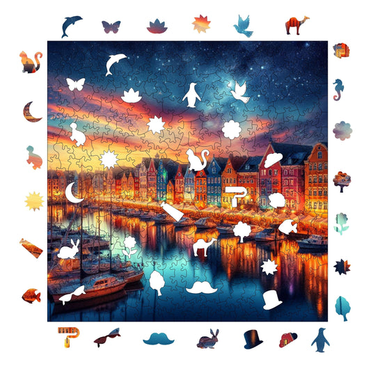 • Yetişkinler İçin Ahşap Puzzle, Venedik'te Akşam Premium Puzzle, 353 Parça Zorlu Ahşap Yapboz, 11,4"x11,4" (29x29 cm) Benzersiz Şekil, Yetişkinler İçin Ahşap Yapbozlar