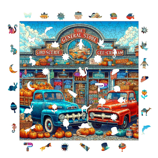 Yetişkinler İçin Ahşap Puzzle, Küçük Kasaba Pazarı Premium Puzzle, 353 Parça Zorlu Ahşap Yapboz, 11,4"x11,4" (29x29 cm) Benzersiz Şekil, Yetişkinler İçin Ahşap Yapbozlar